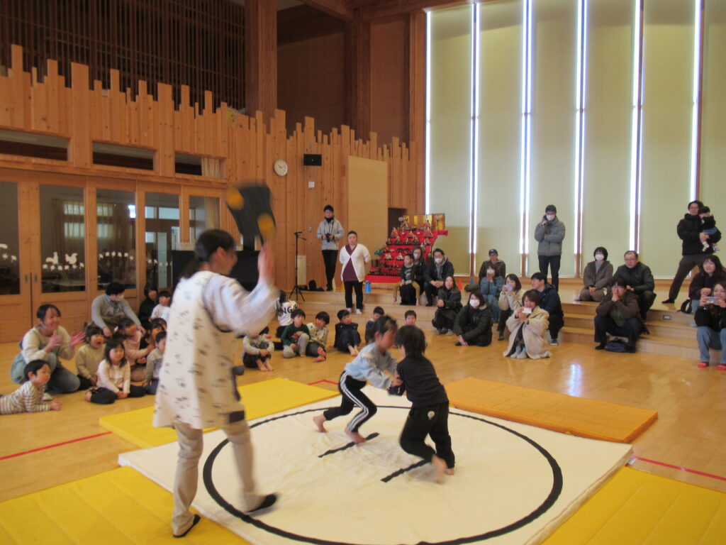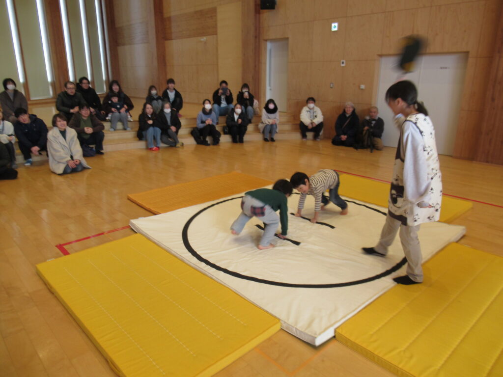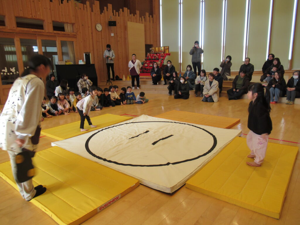 2月9日(月)ふじ組の保育参観日が行われました。今日の活動内容はおすもう大会でした。先月から繰り返してきたおすもうの活動、保護者の皆さんに力強い取り組みを披露しました。「今日勝った!」「負けたけど次頑張る」と頼もしい声を聞かせてくれた子ども達でした。
