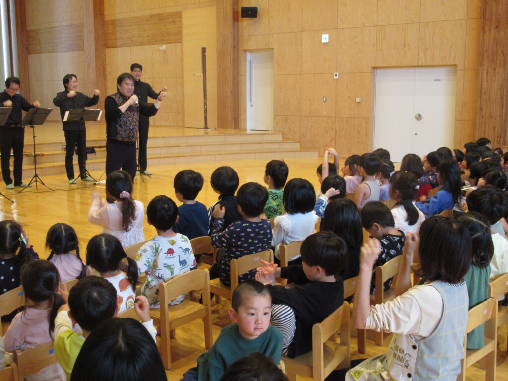 10月27日(月)は津別町で開催されたリコーダーセミナーの講師をされた先生方が来園し、子ども達の為にミニコンサートを開いてくださりました。子ども達の好きなジブリの曲や童謡を中心に30分程度の時間でしたが、みんな真剣に聞き入っていました。最後は手話を交えた簡単な歌を教えてもらい「またね、またね、元気で会おうね!」とみんなで声を合わせて歌いました。めったに得られない貴重な経験、皆笑顔で楽しんでいました。演奏してくださった皆さん、本当にありがとうございました。