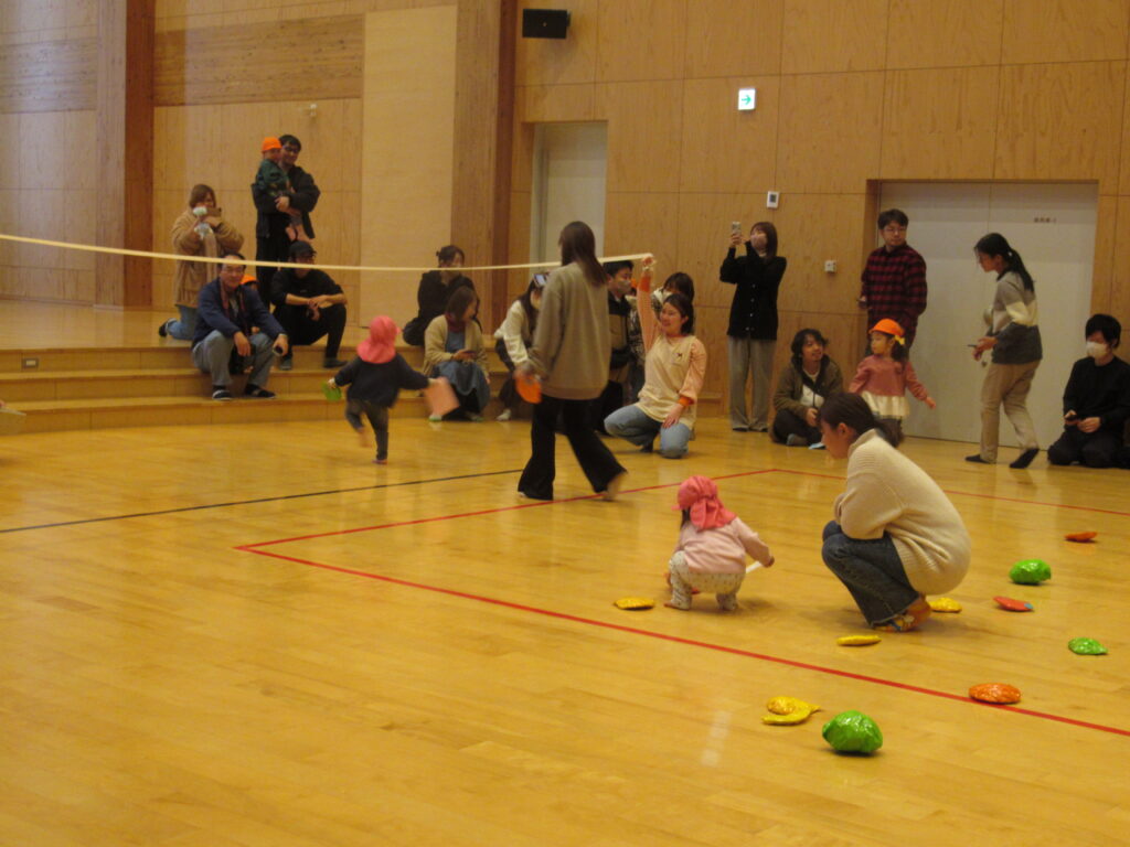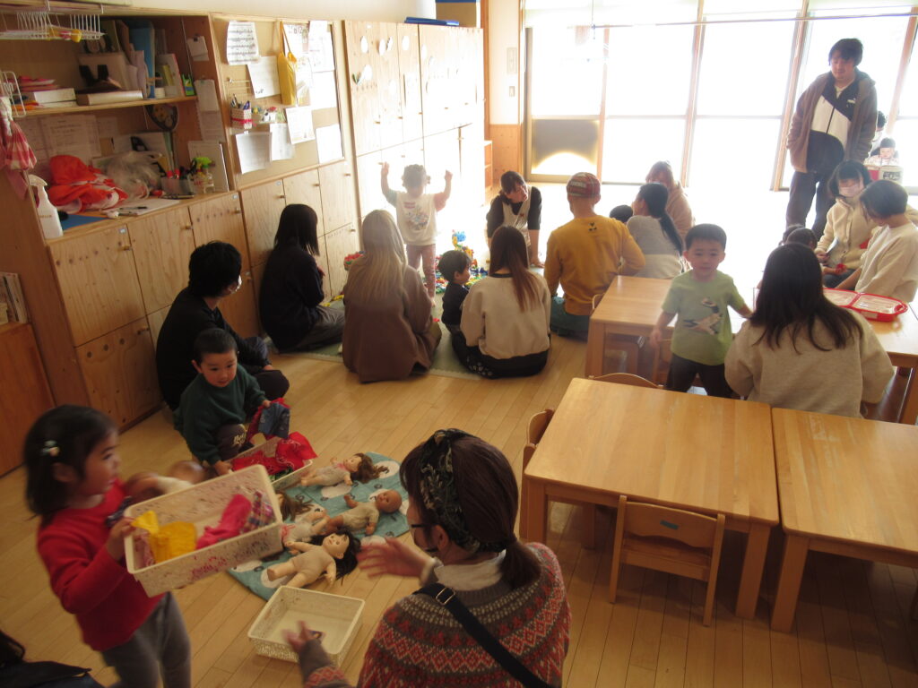 12月4日(木)は乳児クラスの参観日、みんなで運動会を行いました。幼児クラスの運動会を見てから、自分たちもやってみたいと体操やかけっこをまねして活動してきた様子を保護者の方々に見てもらいました。最後はご褒美のメダルをもらい保護者に自慢げに見せていました。運動会の後は日ごろの遊びを親子で楽しんで終了でした。こども園での成長を見せられたひと時になったのではないでしょうか。参観日の後給食試食会が行われました。日ごろ子ども達が食べている給食を試食し、味付けや食材の大きさ等の参考になればと思っています。お忙しい中、参観日に来園いただきありがとうございました。