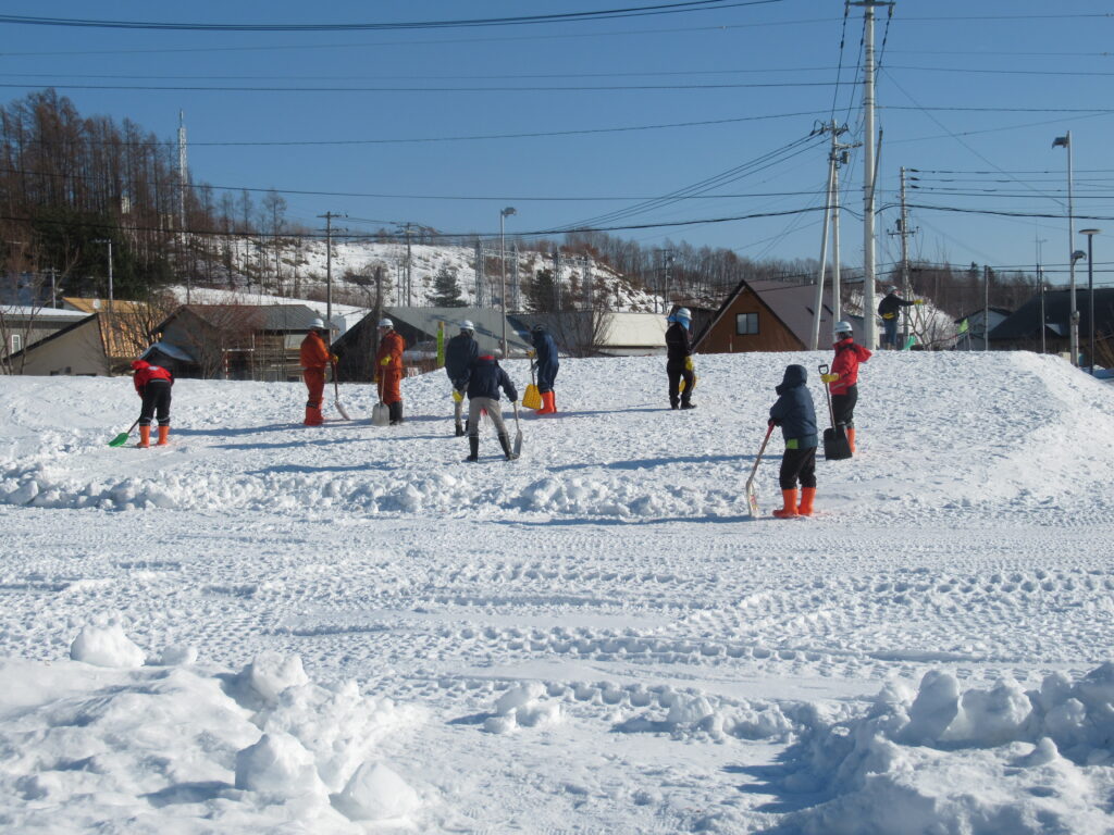 1月13日、津別建設様がボランティアで園庭にスキー・そり用のスロープと雪山を作ってくださいました。昨年は雪が少なく心配しましたが、今年は12月の大雪のため大きなスロープが出来上がりました。外気温が-20℃近くになるこの時期は外遊びの準備も大変ですが、雪山で遊んでくるとほっぺを真っ赤にし、「楽しかった~」と帰ってきます。年長クラスはこのスロープでスキーの活動をした後、町内にあるスキー場でスキーあそびを楽しみます。乳児クラスも雪山に登ったりそり遊びを行ったりと、年齢に合わせて楽しみます。毎年、子ども達の遊び場としてスロープや雪山を作ってくださる津別建設の皆さま、ありがとうございます。